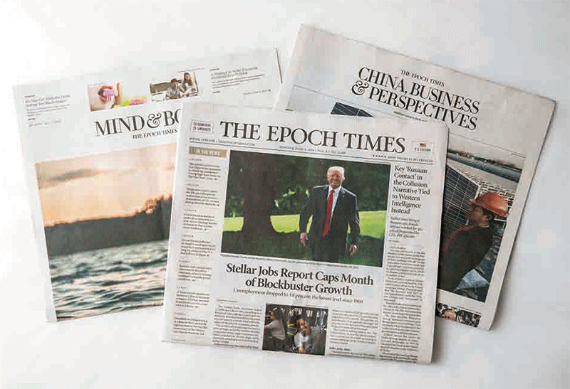 特朗普總統天天都看(英文)大紀元,稱讚大紀元是真實報導的媒體,值得信任。圖為英文大紀元報紙。(Samira Bouaou/大紀元)