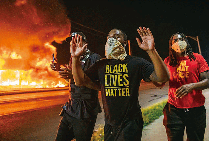 民主黨州各級行政長官都高度配合支持黑命貴和Antifa在各大城市挑起暴亂。圖為2020年8月24日威斯康星州基諾沙(Kenosha)非裔槍擊案引發騷亂。(Getty Images)