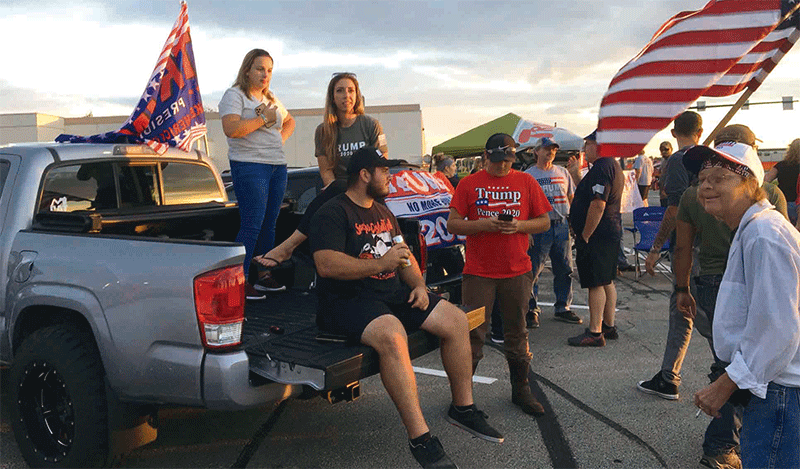 2020年9月3日晚上,賓州西南部小鎮拉特羅布居民等待參加特朗普總統競選集會。(AFP)