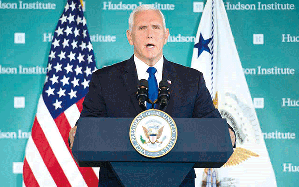 美國副總統彭斯是堅定的反共者。他於2018年10月4日在哈德遜研究所發表的美國對中政策長篇演講,被認為是討共檄文。(AFP)