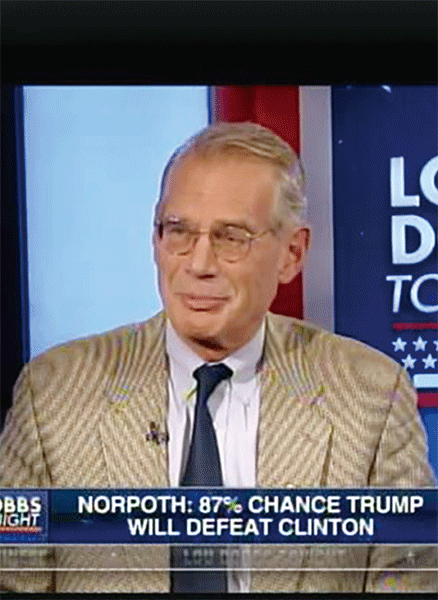 一是美國紐約州立大學石溪分校政治學教授諾帕(Helmut Norpoth)分析歷屆大選,歸納出初選模型與搖擺效益模型兩個預測模型,並成功預測過去五任勝選總統。