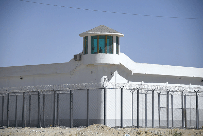 民主黨最新通過的黨綱談到,譴責中國大規模拘押維吾爾人等。圖為2019年5月31日新疆和田市郊關押維吾爾人的集中營。(AFP)