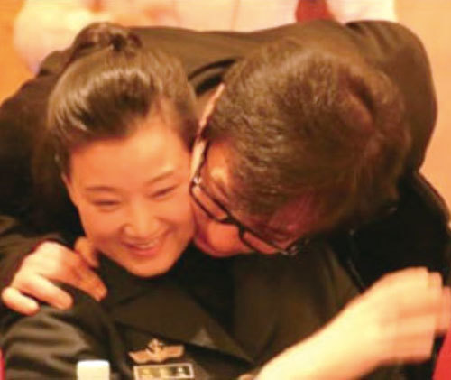 成龍多結交以江澤民集團為主的政商界人物,政治取向傾向江派。圖為2014年3月中共兩會期間成龍與江澤民姘頭宋祖英的曖昧照。(網路圖片)