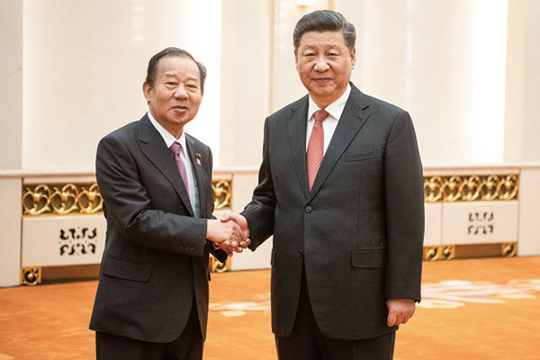菅義偉受親共議員二階俊博(左)推舉,奪得自民黨總裁,成為日本首相。今後在對中關係上,二階的影響力有多大備受關注。圖為二階2019年4月在北京與習近平會面。(Getty Images)