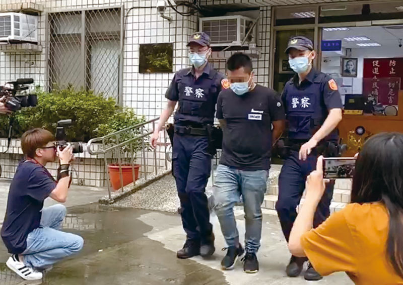 網紅「館長」陳之漢遭槍擊,新北市林口警分局28日表示,一名劉姓嫌疑人(中)已自行投案,疑因騷擾糾紛引發不滿而開槍。(中央社翻攝照片)