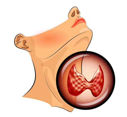 甲狀腺位於頸部前下方,氣管上方,有兩葉,左右葉以峽部連接,每葉約4公分長。而她的瘤右葉4.6公分,比原葉還大,左葉3.5公分,看上去有如頸上綁了個蝴蝶結。她的甲狀腺腫瘤會隨吃食物吞嚥的動作而上下移動,頸部常有束脹如梗的感覺,雖不會痛,但有礙觀瞻。西醫說腫瘤大於4公分就要單側全部切除,以免發生病變。她聽到開刀就害怕,再聽到手術後遺症就嚇到,所以找中醫治療。