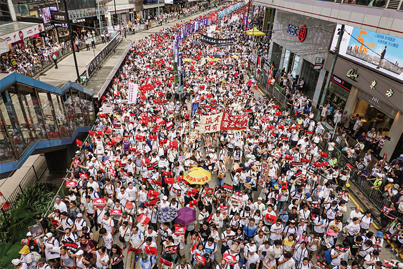 去年6 月9 日,103 萬港民上街遊行,抗議香港政府修訂《逃犯條例》,並要求林鄭月娥下臺。香港藝人鄭敬基與妻子參加了當天的大遊行。(余鋼/大紀元)