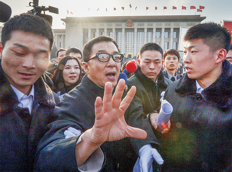 鄭敬基十分心痛目前香港的演藝圈,政治凌駕一切。一幫撐共人士,如成龍等中共代言人,控制了大部分香港影業。圖為2013 年成龍參加中共兩會。(Getty Images)