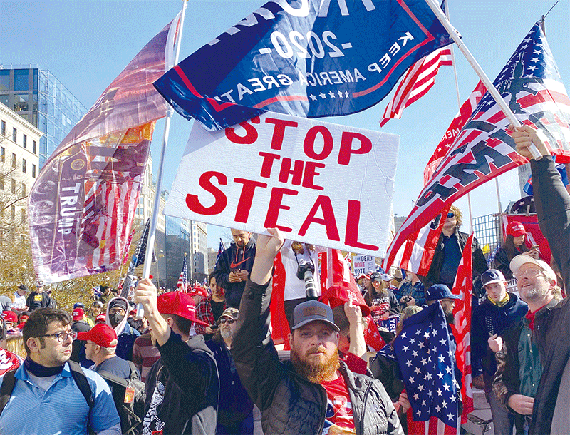 11月14日,50萬人參加美國首都華盛頓DC集會遊行,傳遞反對大選舞弊與支持特朗普連任的心聲。(施萍/大紀元)