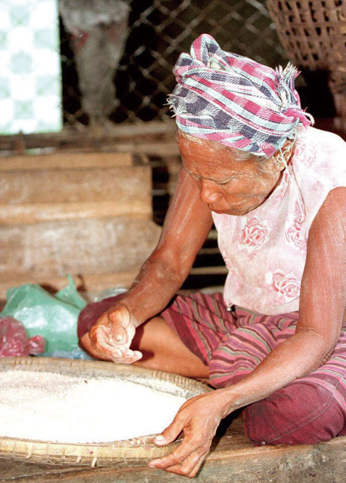印度、越南、泰國等中國大米的主要進口國,要麼限制糧食出口,要麼漲價,中國只得找緬甸進口大米。圖為5月31日,緬甸首都的一個市場上,一名婦女在揀穀殼。(Emmanuel Dunand/AFP)