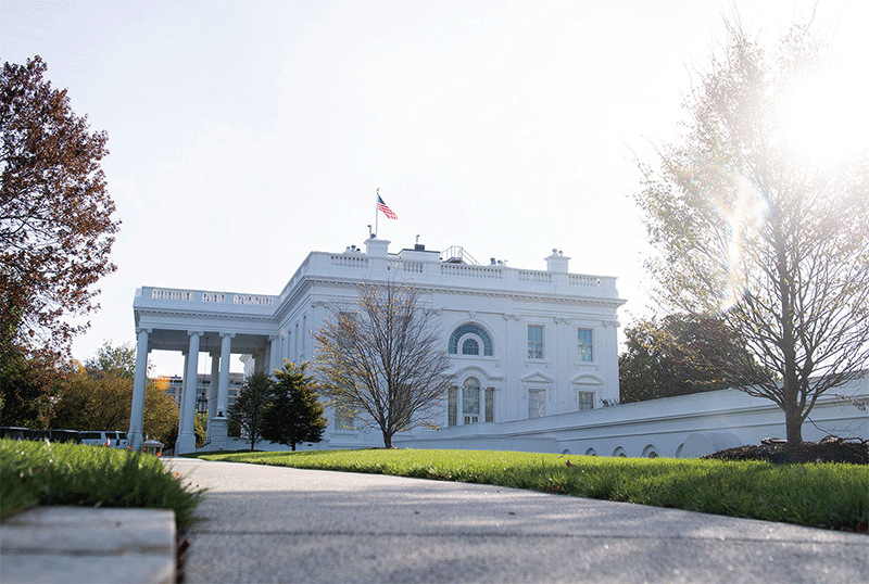 百年來白宮首個內閣《聖經》研讀小組,成員包括副總統彭斯、國務卿蓬佩奧、能源部長佩里和司法部長塞申斯等人。牧師德羅林格每周給他們講《聖經》,還把講課內容向大眾公開。圖為白宮。(Yuri Gripas/AFP)