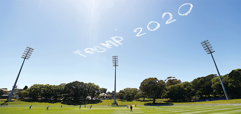 2019年特朗普總統啟動美中貿易戰時曾直言「我是天選之人,所以我要挑戰中國(中共)」。圖為2020年11月15日悉尼天空出現「Trump 2020」字樣。(Ryan Pierse/Getty Images)