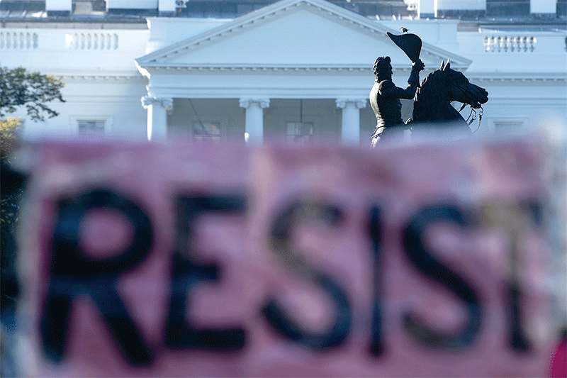 滲透美國的左派勢力在大選中企圖偷竊的,不僅是總統職位和權力,更是人民的天賦人權,以及美國人和全人類的未來。圖為11月4日拜登支持者在白宮外塗鴉示威。(Brendan Smialowski / AFP)