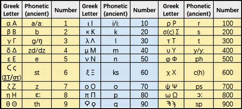 按這種計算方法,「耶穌Jesus」(古希臘音譯Ιησους)一詞對應的數字是10+8+200+70+400+200=888。