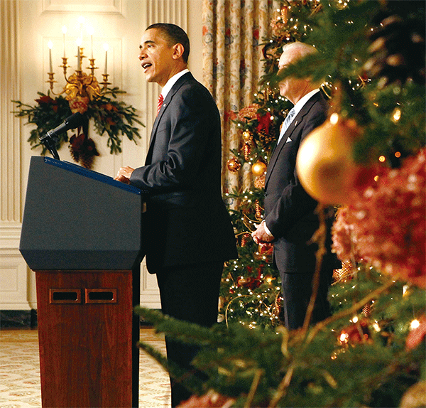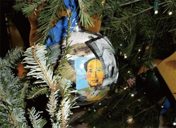 2009年,奧巴馬在白宮的第一個聖誕節樹上掛上帶有殺人狂、前中共領袖毛澤東圖像的裝飾球。(新紀元合成圖)