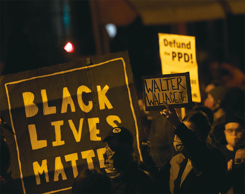 奧巴馬6月1日發布告全國抗議者書給「黑命貴」暴亂指明了方向,隨後BLM要求減少警察經費(Defund The Police)。圖為2020年10月27日賓州費城「黑命貴」抗議活動。(Mark Makela/Getty Images)