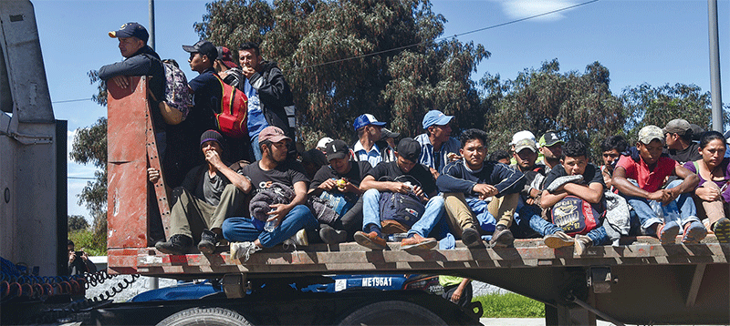 2018年美國中期選舉前,突然出現在美墨邊界的大量移民潮,喬治.索羅斯被指是導演這齣戲的幕後大佬。圖為2018年11月5日載著洪都拉斯人的大篷車往美墨邊境進發,試圖越境美國。(Rodrigo Arangua / AFP)