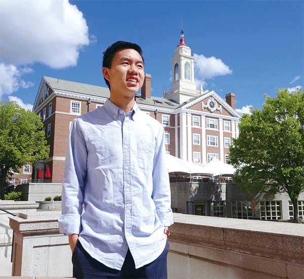 扎克伯格2017年5月在哈佛的演講極度左傾。然而有越來越多的保守學生發聲支持特朗普。圖為投票支持特朗普的哈佛學生威爾.朗2017年5月10日接受採訪。(William Edwards / AFP)