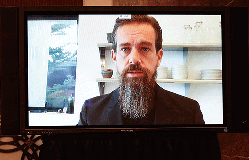 2020年11月17日,推特的行政總裁多爾西被傳訊到參議院的聽證會上接受質詢,就他處理美國大選的方式做解釋。(Bill Clark / AFP)