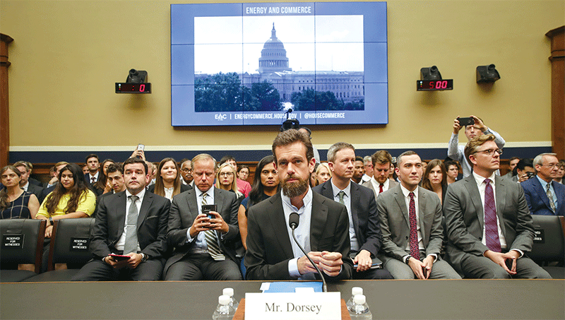 德州的共和黨聯邦參議員克魯茲,嚴厲訓斥推特執行長多西(Jack Dorsey)。搞的言論審查過濾行為是違法的,是用了雙重標準。(Getty Images)