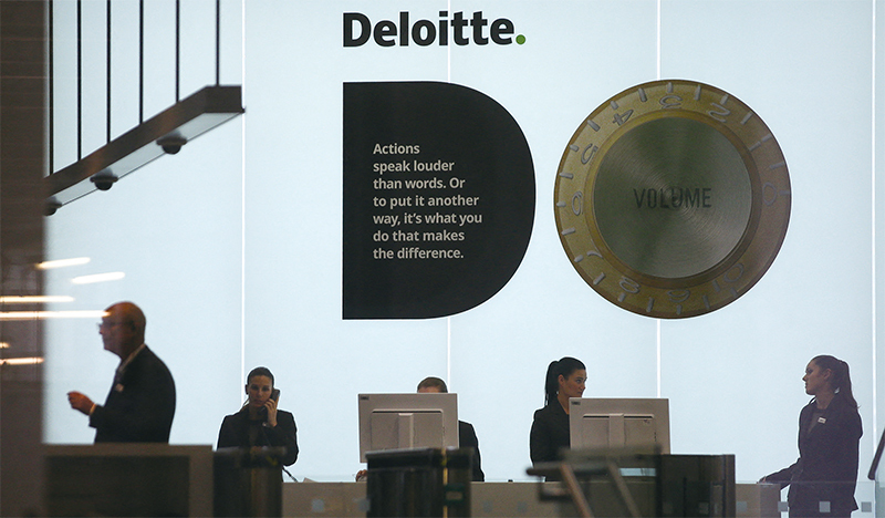 世界四大會計事務所之一的德勤(Deloitte),近日捲入違規風波。圖為倫敦德勤公司。(Daniel Leal-Olivas/AFP)