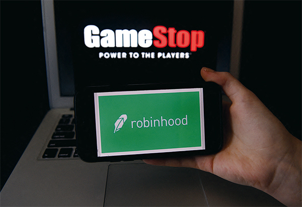 GME股價狂飆,1月28日,羅賓遜股票交易平臺突然宣布用戶只准平倉不得購買,但對華爾街機構卻沒有任何限制。(Olivier Douliery / AFP)