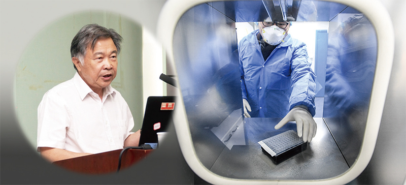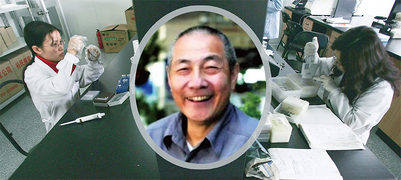 華大基因集團董事長汪建2018年聲稱:「未來5至10年,我們可以化學合成任何生命。」底圖為2005年1月21日,北京華大基因進行DNA測試。(新紀元合成圖)