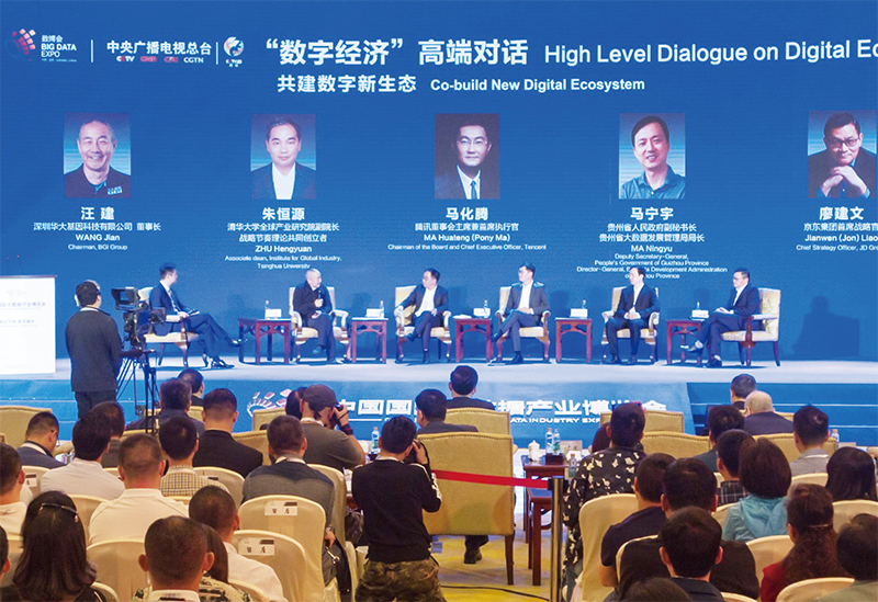 華大基因在成立之初,就知道基因可以做武器。圖為2018年5月28日,汪建(左二發言者)出席貴陽數博會論壇。(Jadranko Marjanovic / Xinhua News Agency / AFP)