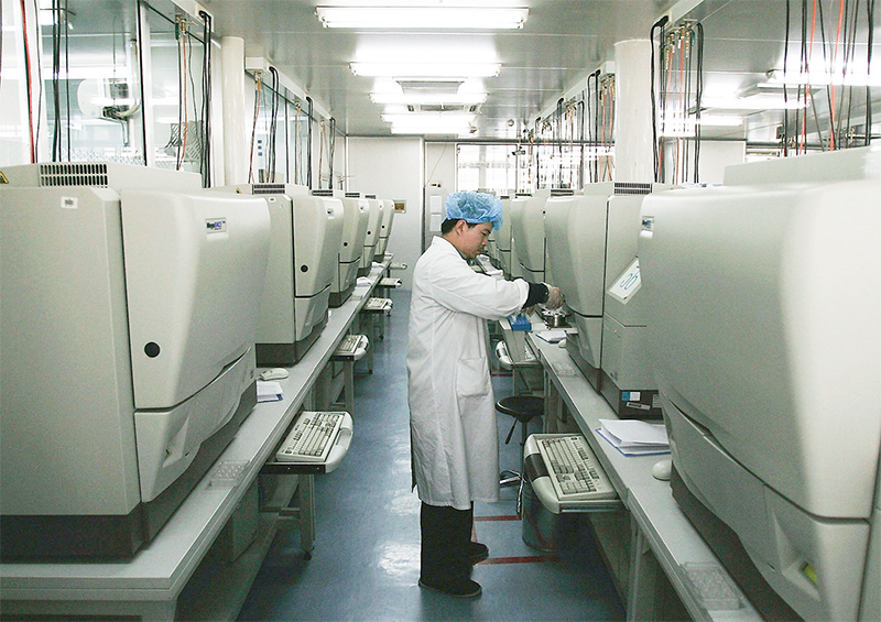 一位投資者表示,華大基因正在建立的數據庫將讓他們變得強大可畏。圖為2005年1月21日華大基因研究中心基礎上組建的北京基因組研究所,進行DNA測試(Andrew Wong / Getty Images)