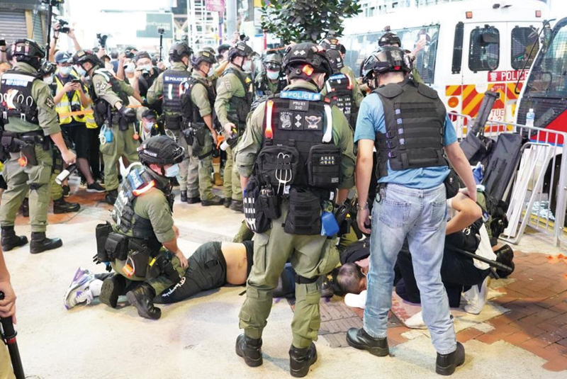 香港正在發生的事情只是中共殘酷人權打壓的一小部分,中共的人權打壓遍布中國。圖為2020年10月1日,香港警察在銅鑼灣截查和拘捕市民和記者。(余鋼/大紀元)