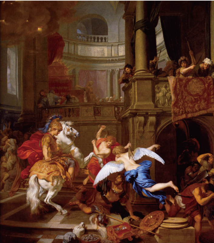 萊瑞斯〈赫利德士被逐出神殿〉(Expulsion of Heliodorus from the Temple),1674年。(Wikipedia)