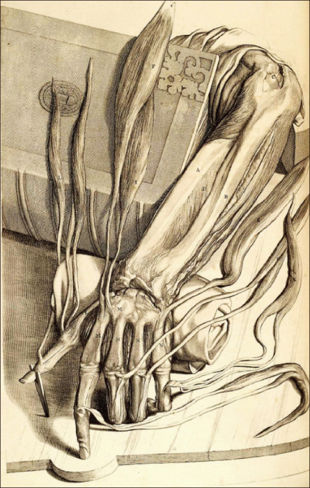 萊瑞斯〈人體解剖圖〉(Anatomical drawing-page),1685年。(Wikipedia)