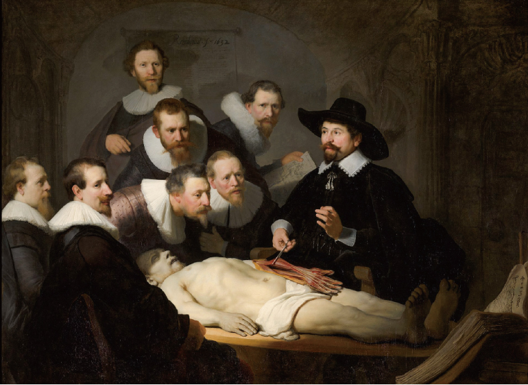 林布蘭特〈尼古拉斯博士的解剖課〉(The Anatomy Lesson of Dr. Nicolaes Tulp),1632年。(The Mauritshuis, in The Hague, the Netherlands)