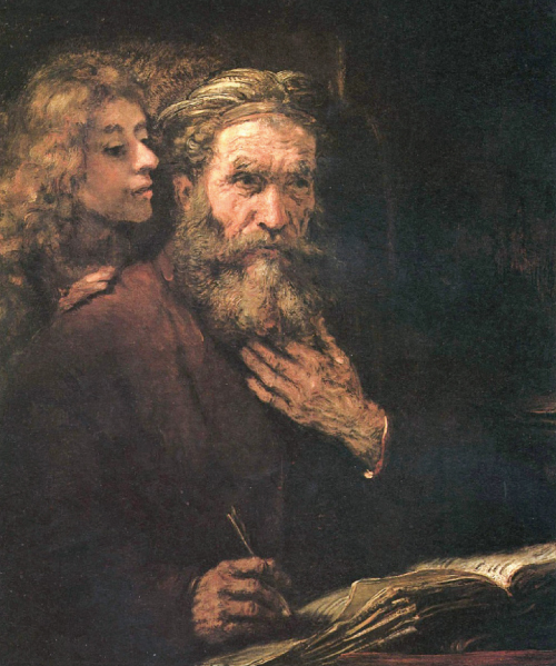 林布蘭特〈使徒馬太與天使〉(St. Matthew and the Angel),1661年。(department of the painting of Louvre)