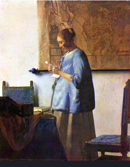 維梅爾〈讀信的藍衣婦人〉(Woman in Blue Reading a Letter),1657年。(Rijksmuseum, Amsterdam, the Netherlands)