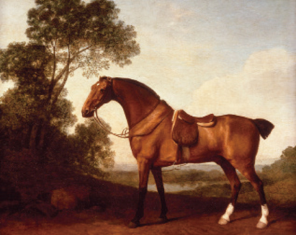 為了實務方便,工作馬的馬尾通常被剪得很短。喬治.斯塔布斯的作品〈上鞍的栗色獵馬〉,1786年。油彩、畫板,55.2 x 70.5公分。丹佛美術館,美國。(Public Domain)