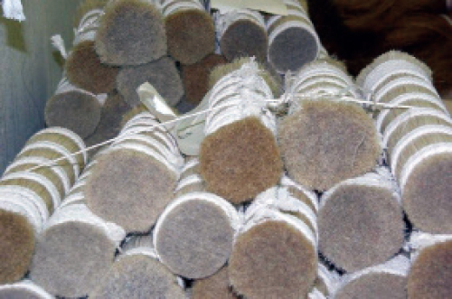 這裡會根據布料的顏色需求使用兩種不同寬度的馬毛:黑色或深顏色的布料,以及接近白色或淺色的布料。白色馬毛相對價格昂貴,因為純白馬毛的需求量比較大,如常用在小提琴的弓毛。