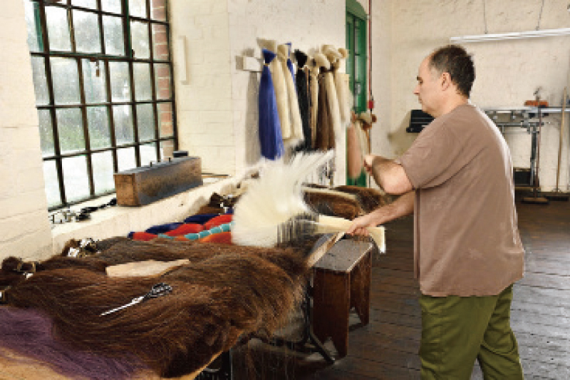 現在的馬毛進口地區又更不一樣了。「現在主要是蒙古和西伯利亞毛,主要從中國運過來——有點像古老的絲路——而且前後通常要花上三至五個月的時間。」史密斯說,有趣的是,在蒙古那樣惡劣氣候下長出的馬毛,相信會比一般的還要強韌。