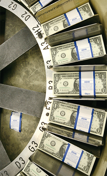 美國要捍衛美元,保護其印鈔機,而中共想挑戰美國,所以增加人民幣配置,並以香港為基地,為中心來與美國競爭。圖為美國雕刻與印刷局印鈔。(Mark Wilson/Getty Images)
