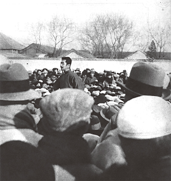 魯迅已是頗有名望的大作家時,卻穿得像個乞丐,原因是他偷看弟弟周作人的日本媳婦洗澡,被趕出了四合院。圖為1929年魯迅在北京對群眾講演。(公有領域)