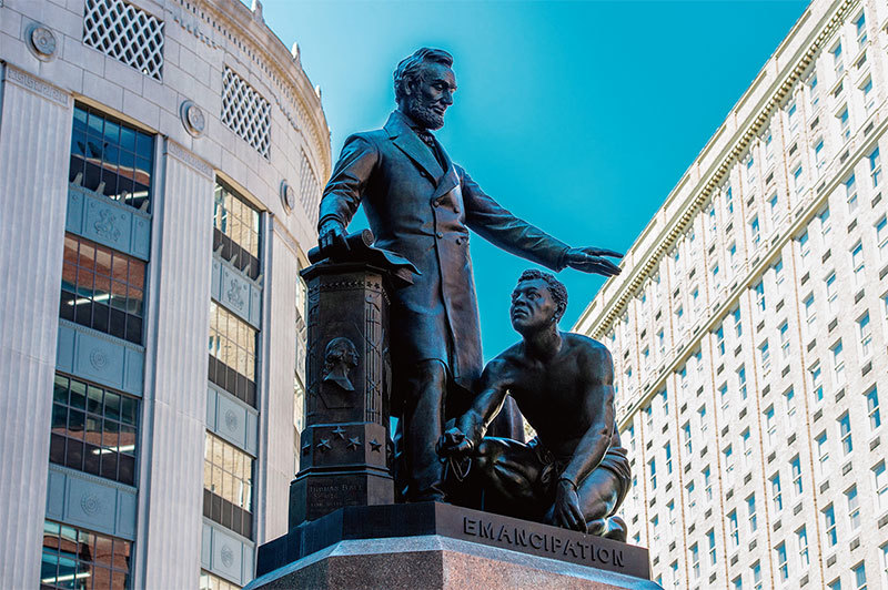 為了反對種族主義,矗立在波士頓公園廣場的前美國總統林肯(AbrahamLincoln)的雕像(圖)被拆除,以其名字命名的學校也被迫更名。(JosephPrezioso / AFP)