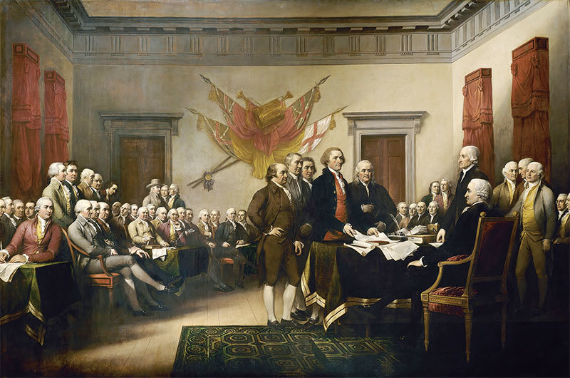 美國大革命泛指北美十三殖民地脫離大英帝國,並創建美利堅合眾國的一連串事件與思潮。圖為美國獨立宣言簽署的油畫。
