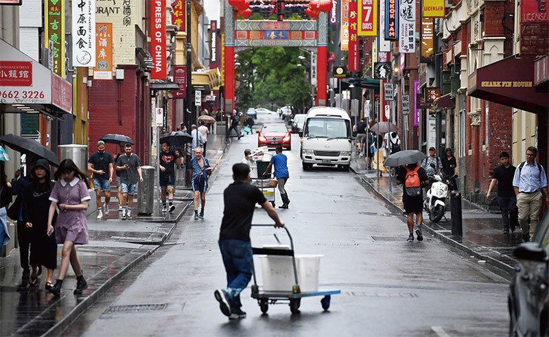 近期一份對華裔澳洲人的調查顯示,近半數受訪華人擔心中共對澳洲政治的影響,有近20%受訪者說,他們過去一年受過人身威脅或攻擊。圖為澳洲墨爾本中國城。(William West/AFP)