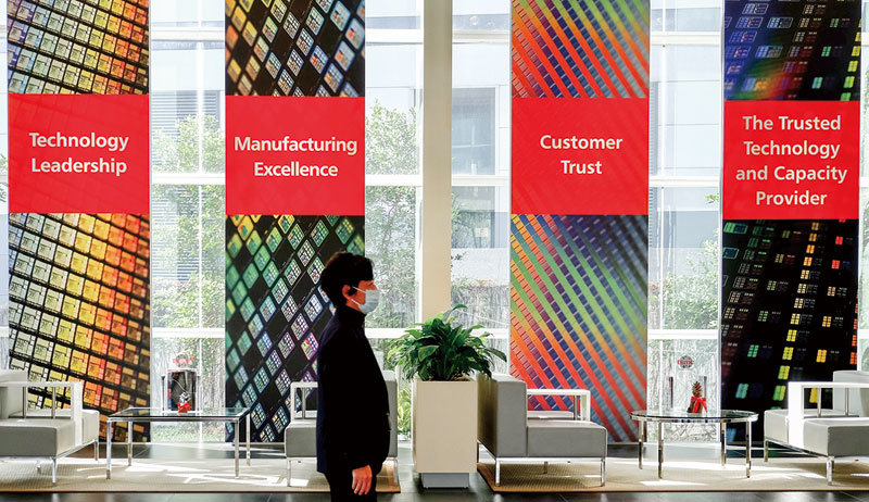 台積電的四大核心價值是誠實、守信、創新及客戶信任。這四個字的英文縮寫「I.C.I.C」,就是台積電成功的軟實力。圖為台積電新竹總部大廳。(Sam Yeh /AFP)
