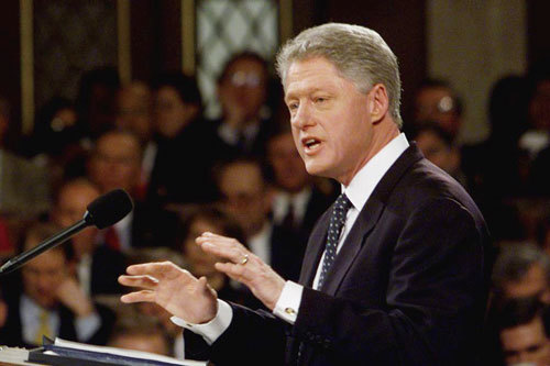 庫默受到前總統克林頓(圖)信任。克林頓1999年1月到國會發表國情咨文時,庫默被選為「指定倖存者」:在總統及所有內閣成員喪生時,暫時代理總統職位。(Win Mcnamee/AFP)