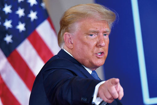 美國左派看似團結,實際上在共同敵人特朗普消失後,已開始分裂。圖為特朗普總統2020年11月4日在華盛頓特區白宮東廳舉行的選舉之夜發表講話。(Mandel Ngan / AFP)