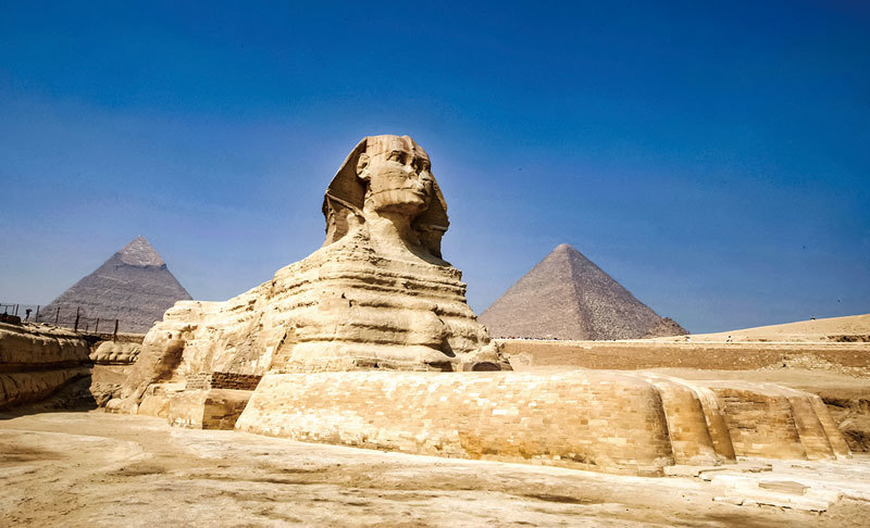 開羅吉薩高地上的獅身人面像,是世界上最著名而又神祕的雕像之一,其起源與身世至今是個謎。有學者分析它的歷史可能距今1萬年至80萬年之間。石像的獅身部分曾被風沙埋沒,只露出人面,第一個被記載有據可查的獅身發掘工作是在公元前1400年,整個過程被刻在獅身人面像前的記夢碑上。