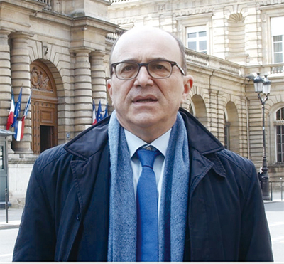 4月14日,法國參議員安德烈.加托林( André Gattolin)先生就香港大紀元印刷廠遭襲表示譴責。(大紀元視頻截圖)