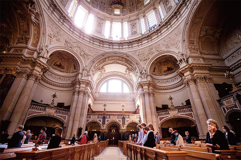 保守的時代思潮,最初是在基督教的虔誠和對世襲領袖的忠誠中發展起來的。圖為2020年5月10日德國民眾參加柏林大教堂的周日禮拜。(Odd Andersen/AFP)