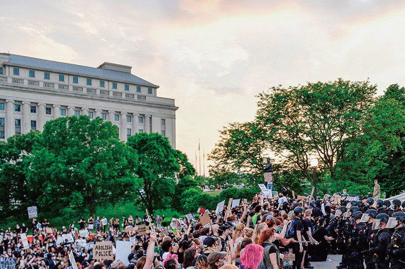 哈扎尼指出,自由社會特別容易受到馬克思主義思想的影響。圖為2020 年6 月5 日,美國羅德島州普羅維登斯一個「黑命貴」(BLM)集會現場, 警察與抗議者對峙。(Joswph Prezioso /AFP)
